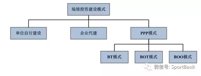 2010年,《国务院关于鼓励和引导民间投资健康发展的若干意见》发布,提出鼓励民间资本投资生产体育用品,建设各类体育场馆及健身设施,从事体育健身、竞赛表演等活动。同此,PPP模式在体育场馆,尤其是大型体育场馆的建设中成为最受欢迎的方式。当前PPP模式有多种细分模式,其中涉及到建设的主要有BT模式、BOT模式和BOO模式。